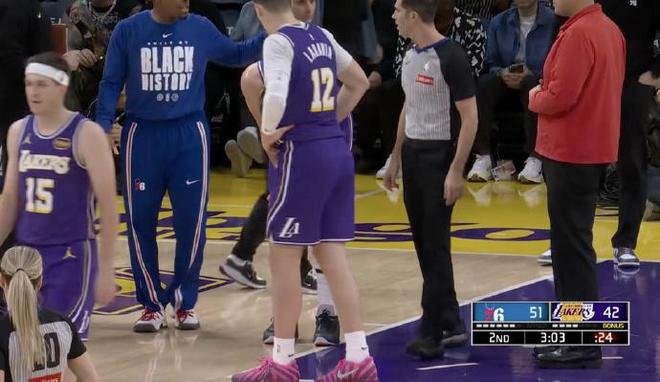 - 里夫斯35+6湖人終結(jié)76人5連勝 東契奇?zhèn)硕鞅鹊?5+7+7