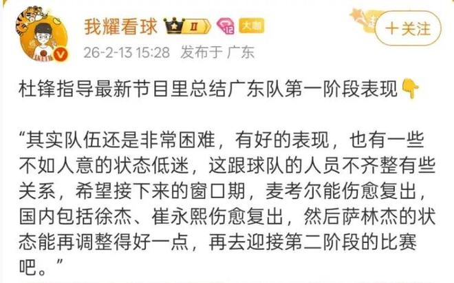 CBA聯(lián)賽進(jìn)入了窗口期,不少球隊(duì)都有外援調(diào)整計(jì)劃。作為爭(zhēng)冠熱門(mén)之一的廣東男籃,內(nèi)線的問(wèn)題也非常明顯,大外援薩林杰打強(qiáng)隊(duì)就低迷的狀態(tài)引發(fā)了球迷不滿,不少?gòu)V東球迷都期待廣東男籃能夠換掉薩林杰簽一名足尺寸、夠強(qiáng)硬的大外援,這樣球隊(duì)的爭(zhēng)冠機(jī)會(huì)將會(huì)提升不少,對(duì)此球隊(duì)主教練杜鋒在接受采訪時(shí)作出了回應(yīng)。