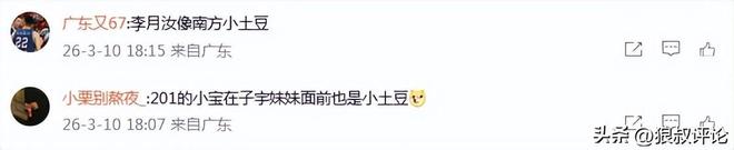 有網(wǎng)友評論說道:“201的小寶在子宇妹妹面前也是小土豆”。